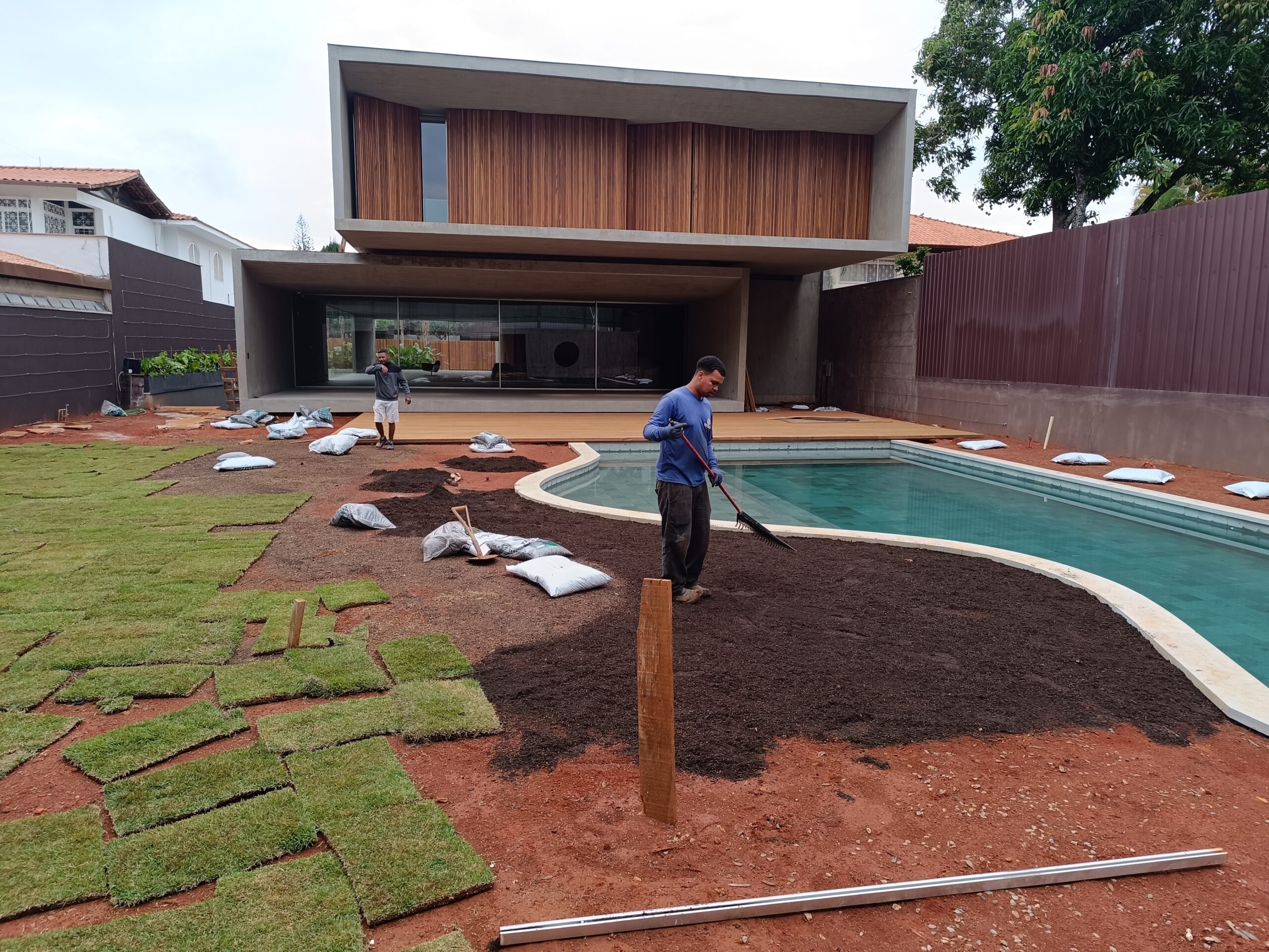 Fornecimento e plantio de grama Batatais e Esmeralda com preparo técnico do solo, nivelamento e acabamento profissional para grandes áreas.